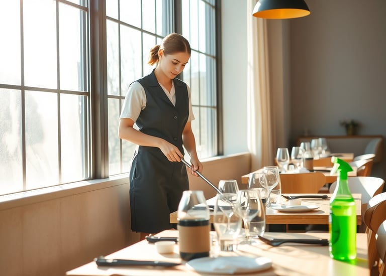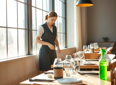Detailed daily and deep cleaning for kitchens, dining spaces, and service areas.